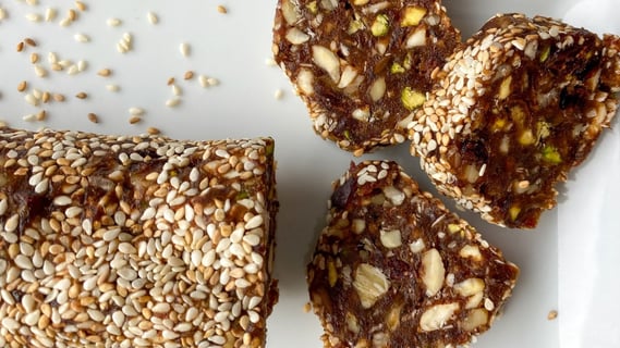 - 3 cups mixed nuts & seeds, roughly chopped in a food processor (examples: almonds, pecans, pumpkin seeds, amarath or millet)
